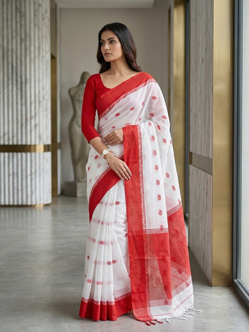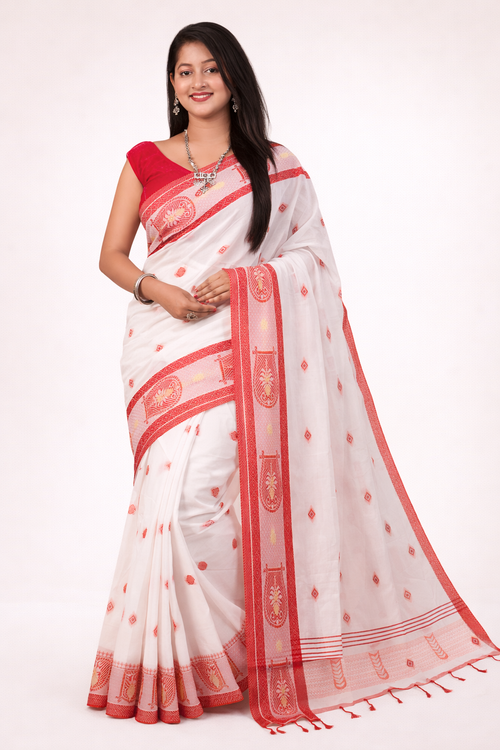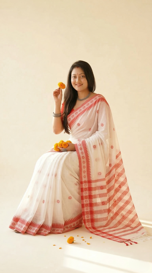"Celebrate this Shardiya with the purity of Santipur. Handcrafted elegance that speaks to the soul of Bengal."